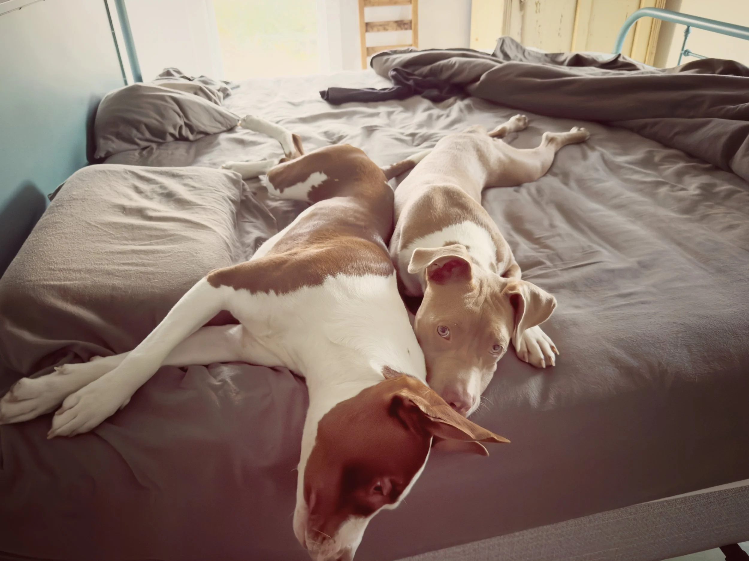 Right away Ziggy and Lola did well… on appearance. A lot of sounds, but we knew pitties play rough. But we then noticed Ziggy would get really amped up and would bite her too hard. She was like a Mack truck, bouncing right back, no awareness of being perhaps a bit too… aggressive? Pushy was more like it. She is non-stop pushy. She appeared to be so much younger in her awareness, ability to listen, and demeanor.