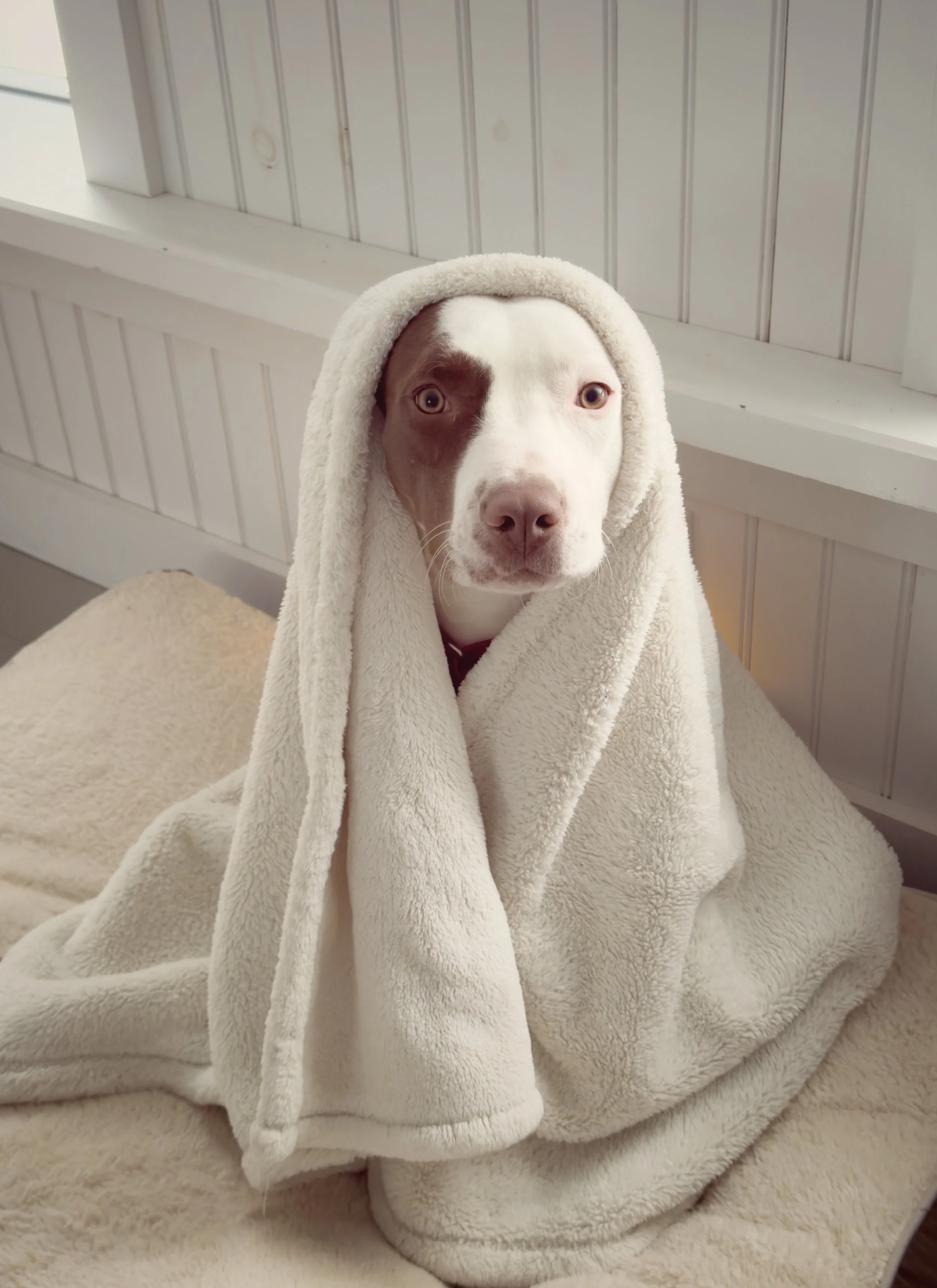It was mid January 2025, and he had been in a foster home in Maine for a month by then. Still very shy and timid (he also got car sick on the way to the meeting point), he shook all the way home. I sat in the back with him, and by the time we got home he had his face in my lap.