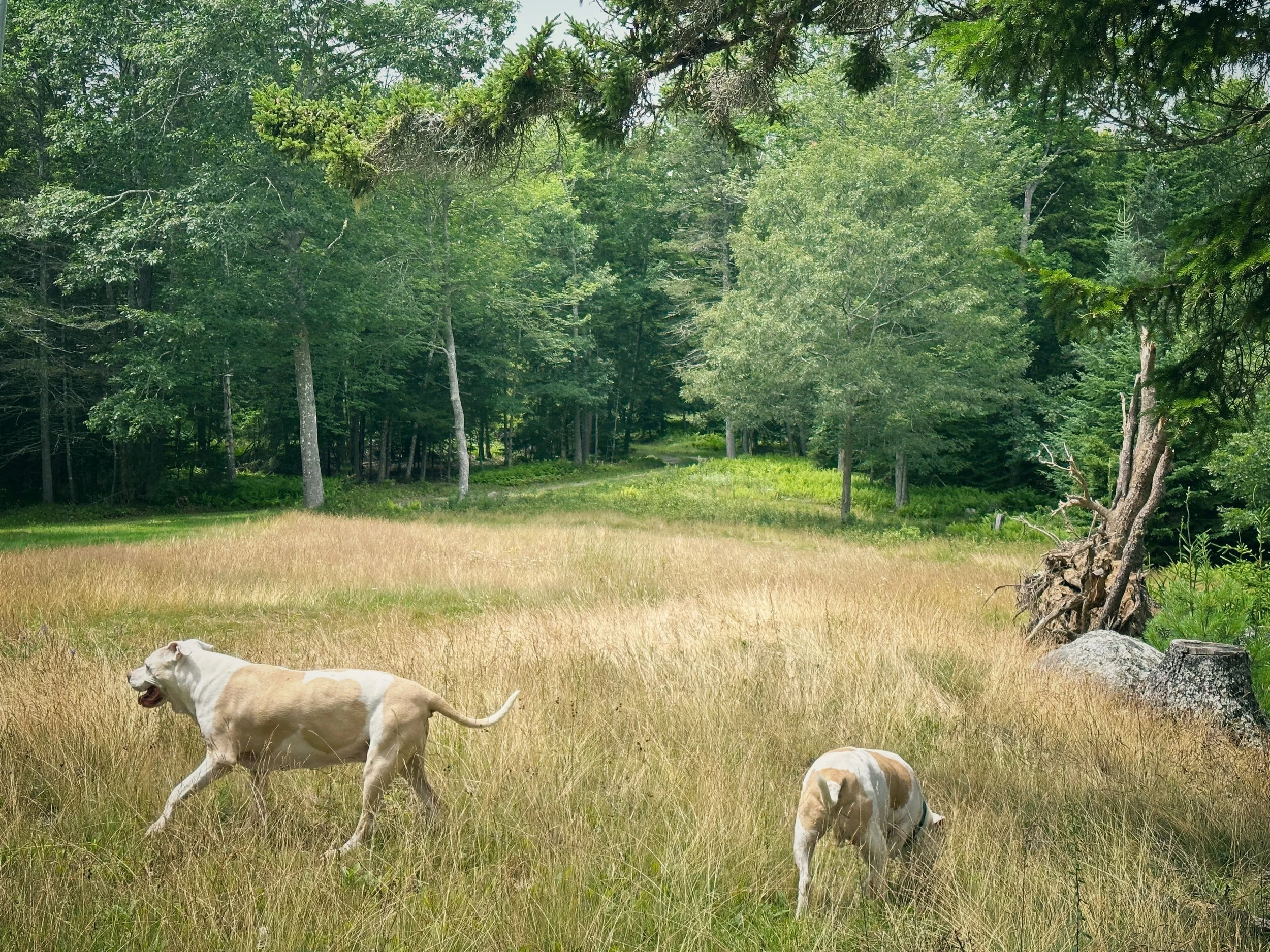 Because we adopted Ziggy in January, it was not easy to go out and walk around. Living on an island, there are very limited places to walk or hike with a dog, especially in the middle of winter. There are no dog parks or sidewalks to walk on (I do appreciate living rural, but it does have some disadvantages). So we took walks on the property adjacent to ours, bundling Ziggy up, or spent a few minutes running around the veggie garden, the only place back then that was fenced in.